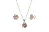 Juego de Aretes y Dije de Perlas Cultivadas Rosa en Forma de flor en Plata.925 con Cadena de 46cm