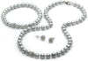 Juego de Collar y Pulsera de Perlas Cultivadas Gris, Broqueles de Cristales en Plata .925