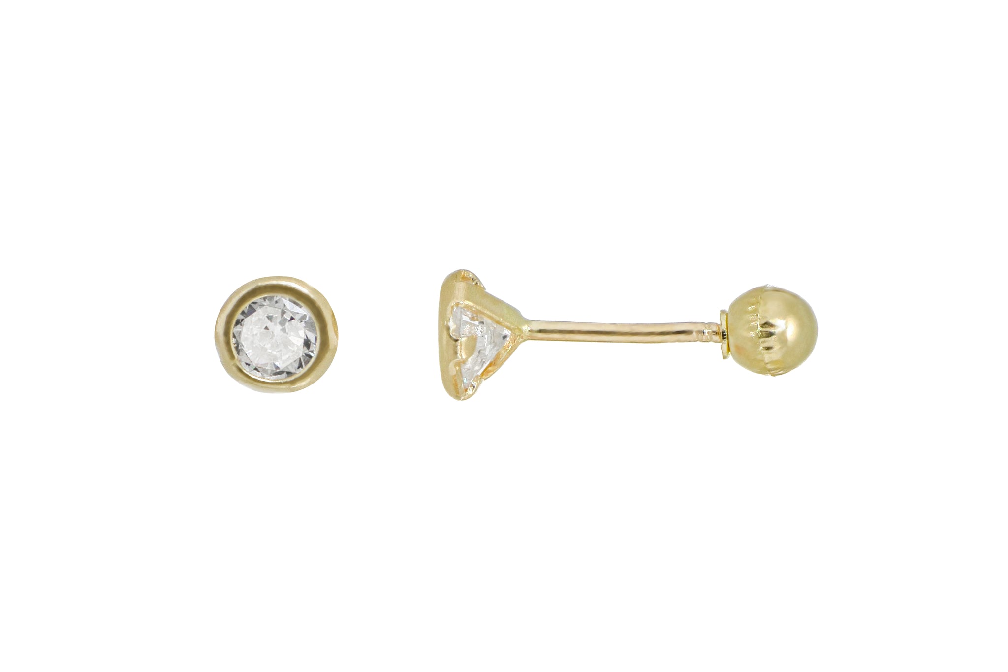 Inicio/Aretes/Aretes Broquel de Oro 10K – Cristal Redondo de 3mm con Bisel – Diseño Minimalista y Sofisticado