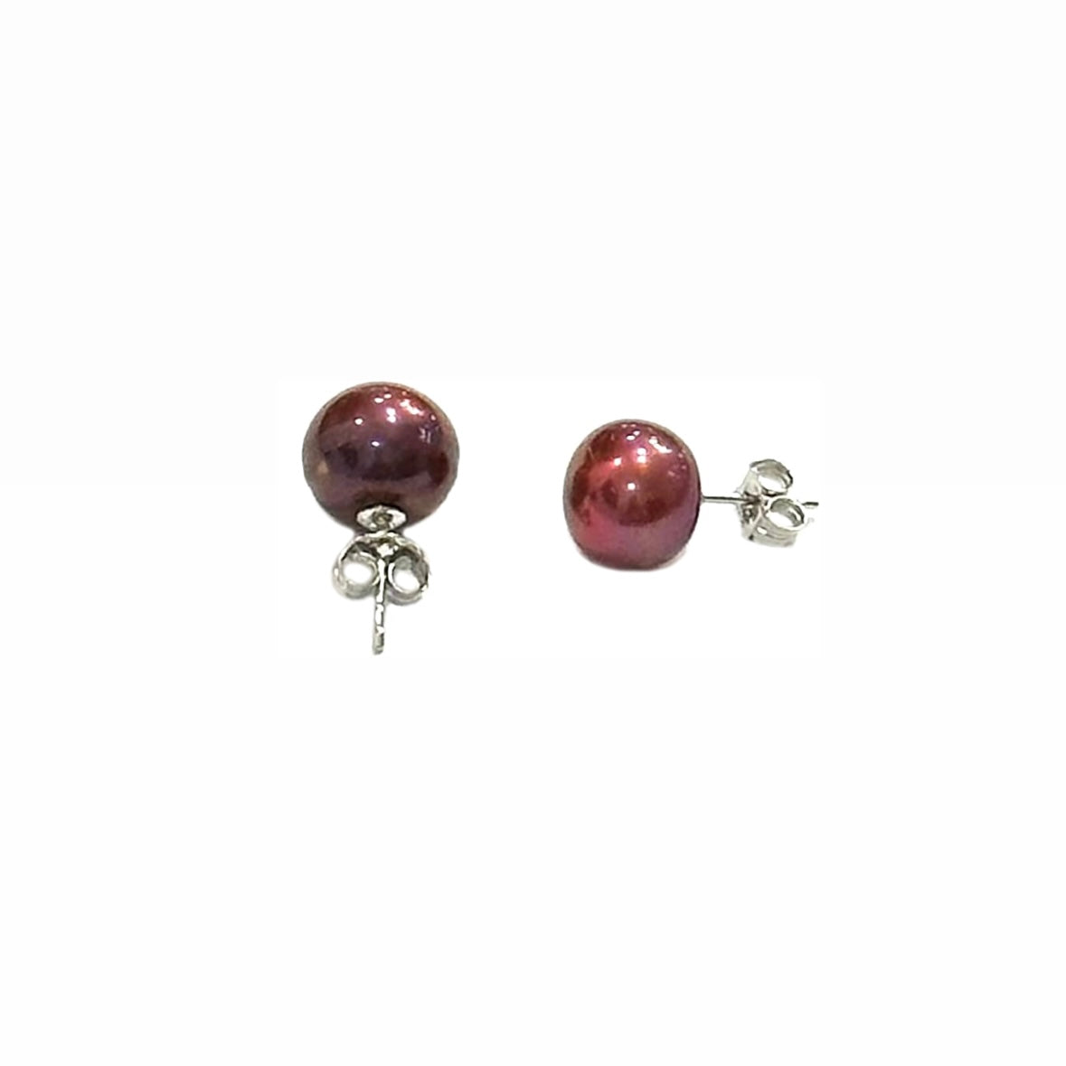 Broquel de Perla Cultivada AAA 9-10mm Boton Tinta en Plata .925