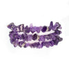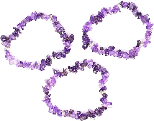 Juego de 3 pulseras de chips de amatista natural con rondeles de metal con cristales blancos